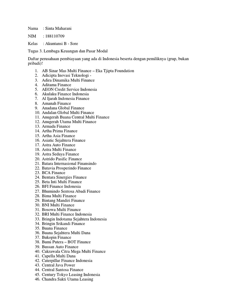 Bagi sobat yang lagi butuh informasi mengenai perusahaan yang ada di indonesia bisa dilihata dalam dafatr dibawah ini, baik berupa jasa keuangan ini kisah nyata saya.